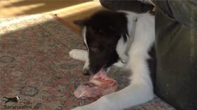 ● Jaimie hat seine erste eigene Beinscheibe gefuttert.